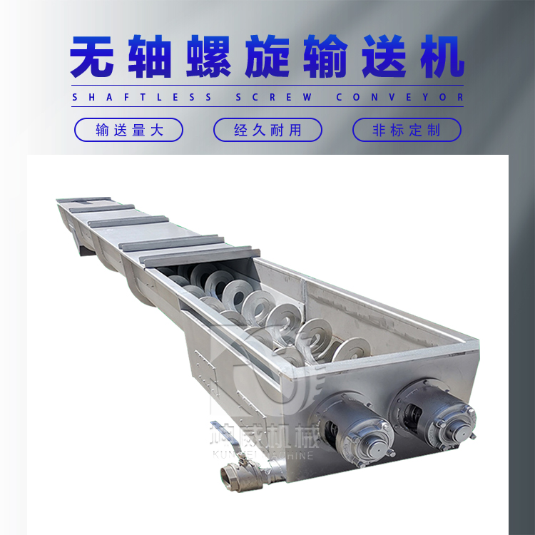 4、無軸螺旋輸送機具有良好的環保性能。無軸螺旋輸送機選用完全密封的運送機和易于清潔的螺旋表面,保證環境衛生,并保證被運輸的物料不受污染或走漏。