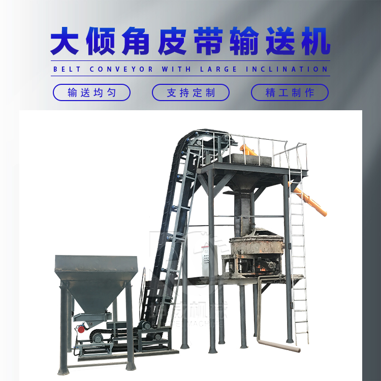 為規避使用中帶式輸送機運行傳送皮帶滑動的問題,可選擇高強度阻燃花紋鋼絲繩芯抗撕裂輸送皮帶以增大與帶面間的摩擦阻力,并將帶體平鋪在深槽形托輥組上,選用錯位排布托輥上槽角為六十度即可,以增大物料與鋼絲繩傳送帶間的側向擠壓力,防止使用中整機撒料,根據擋邊皮帶輸送機的運載能力需選配適當的裝載機構,再根據現場情況使用給料斗選擇適當角度,將溜槽設計成勺型,落料方向垂直改為水平,這樣能保證輸送更加順利,降低對皮帶的沖擊力。